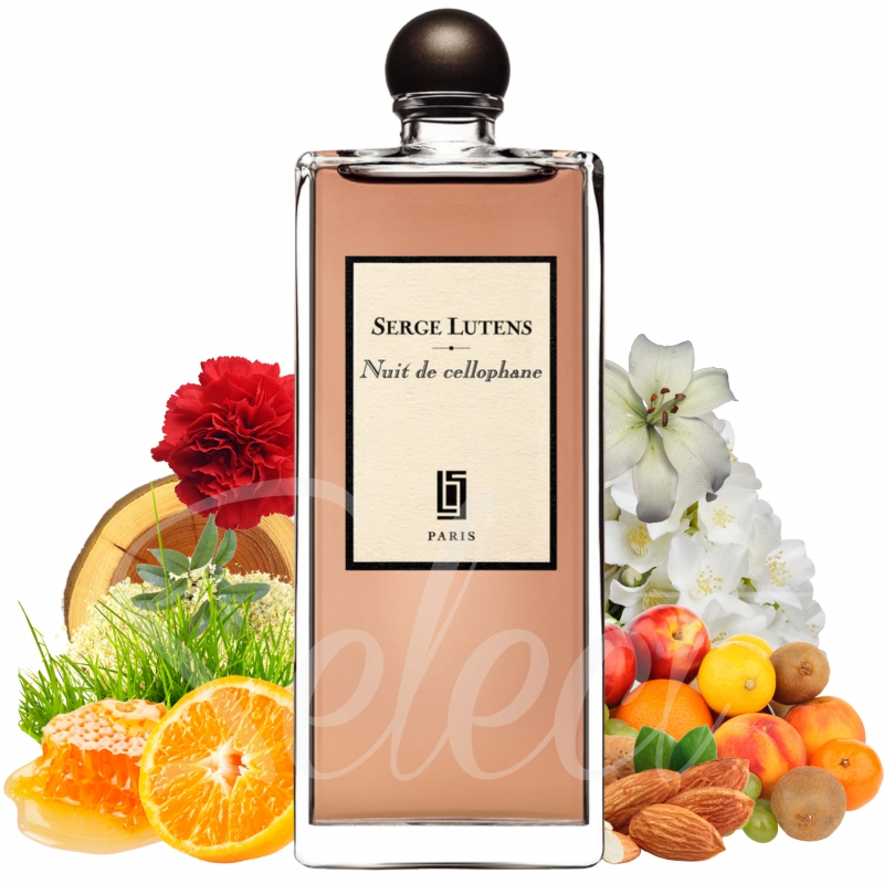 Удивительный, сексуальный и приятный аромат Серж Лютенс Нюи де Селёфан (), как и известный парфюм Serge Lutens Bas De Soie, подарит своей поклоннице самые необыкновенные и несравненные моменты счастья и радости. В состав яркой парфюмерной композиции аромата Nuit de Cellophane входят ноты легкого жасмина, чарующей лилии, чудного меда, чувственного мускуса, незабываемого миндаля, сочного абрикоса, османтуса, пряной древесины, свежего мандарина и благоухающей гвоздики.