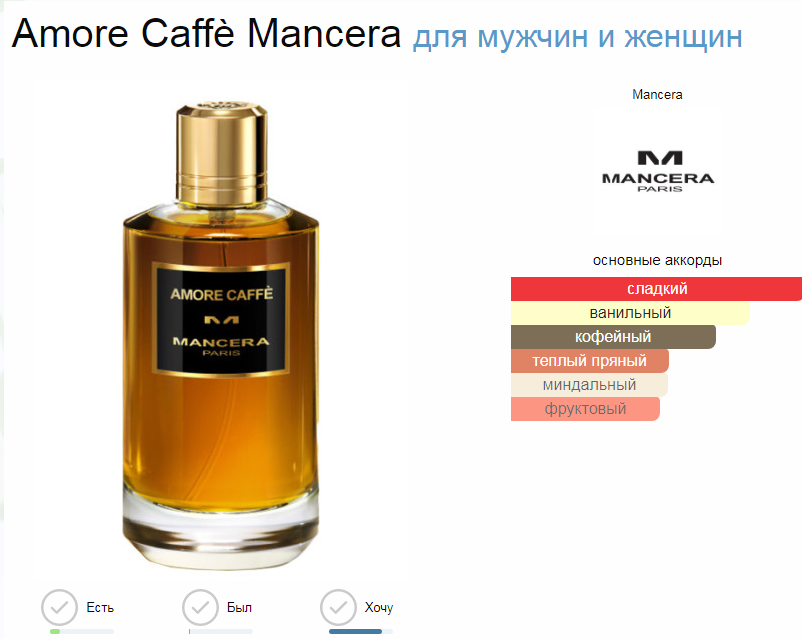 Верхние ноты: Кофе и Амаретто; средние ноты: Мороженое и Ваниль; базовые ноты: Тростниковый сахар, Ваниль и Серая амбра.