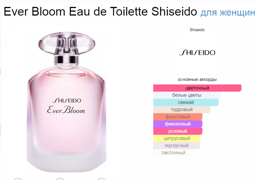 Верхние ноты: Пион, Фиалка, Османтус, Бергамот и Лимон; средние ноты: Гардения, Цветок апельсина, Цикламен, Роза и Яблоко; базовые ноты: Белый мускус и Сандал.