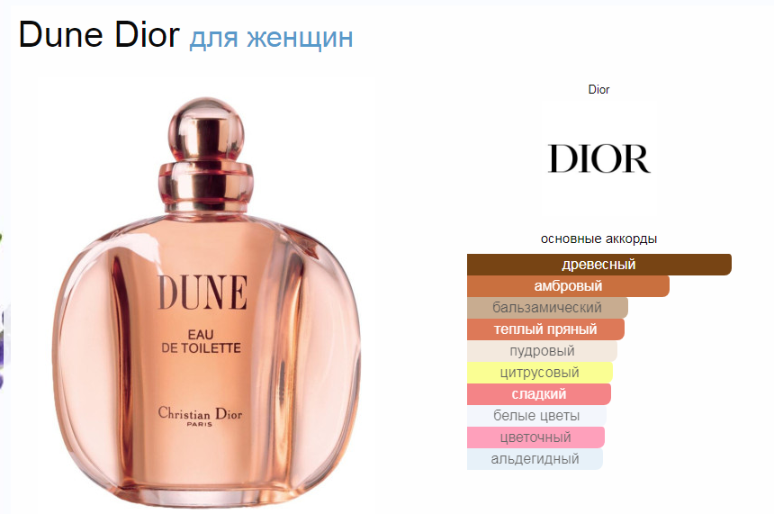 Верхние ноты: Розовое дерево, Альдегиды, Мандарин, Бергамот и Пион; средние ноты: Лилия, Иланг-иланг, Желтофиоль, Жасмин и Роза; базовые ноты: Амбра, Сандал, Бензоин, Дубовый мох, Ваниль, Пачули и Мускус.