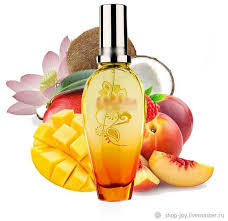 Верхние ноты: Манго, Нектарин и Красный апельсин; средние ноты: Малина, Каинито, Водяная лилия и Лотос; базовые ноты: Кокос, Мускус и Сандал.