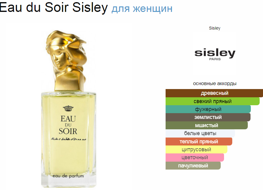 Верхние ноты: Грейпфрут и Мандарин; средние ноты: Дубовый мох, Можжевельник, Пачули, Перец, Гвоздика (цветок), Ирис, Роза, Сиринга, Французский лабданум, Жасмин, Ландыш и Иланг-иланг; базовые ноты: Мускус и Амбра.