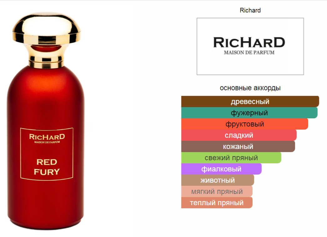 Верхние ноты: Ягоды можжевельника, Шафран и Грейпфрут; средние ноты: Кожа, Фиалка, Земляника и Цветок апельсина; базовые ноты: Малина, Розовый перец, Кашемировое дерево и Ветивер