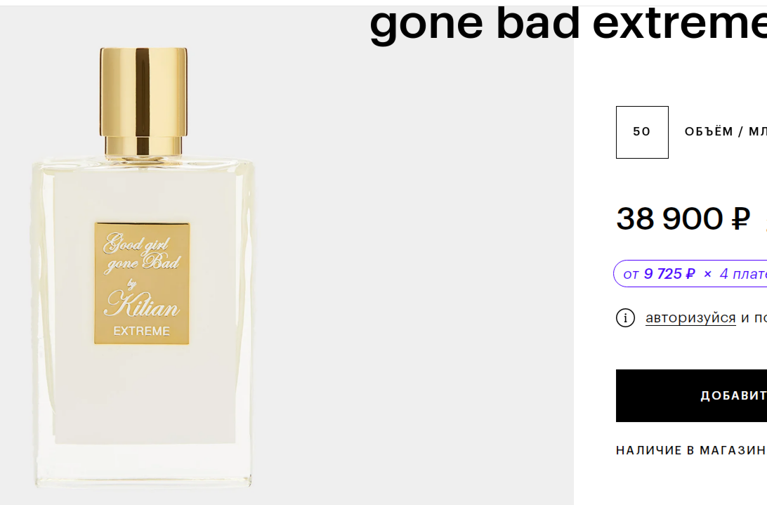 делим рефил без спрея. Good Girl Gone Bad Extreme By Kilian 100мл. Верхние ноты: Османтус, Жасмин, Майская роза, Персик и Вишня; средние ноты: Тубероза, Молоко, Нарцисс и Цветок апельсина; базовые ноты: Амбра, Экстракт белого кедра, Карамель и Мускус.