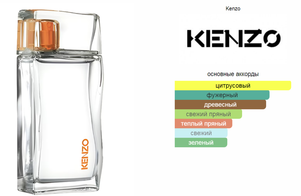Верхние ноты: Грейпфрут, Горький апельсин и Цветок имбиря; средние ноты: Ягоды можжевельника и Лаванда; базовые ноты: Ель, Кедр и Ветивер.