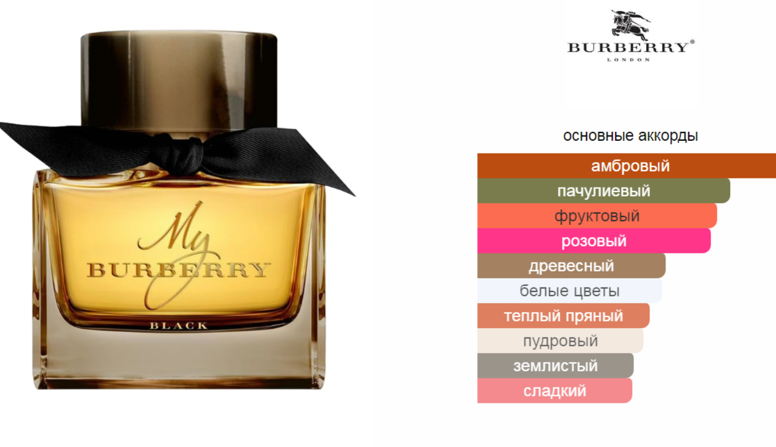 Верхняя нота: Жасмин; средние ноты: Персик и Роза; базовые ноты: Амбра и Пачули.