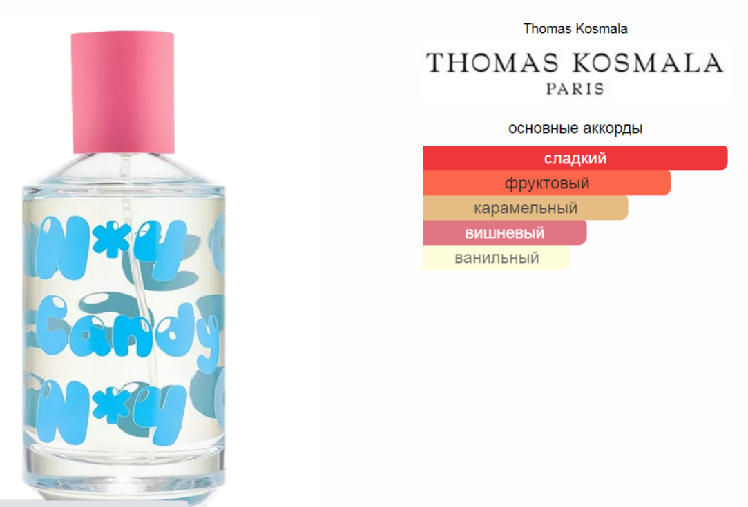 Верхние ноты: Красные фрукты и Вишня; средние ноты: Цветок малины и Тиаре; базовые ноты: Сахарная вата, Ваниль и Карамель