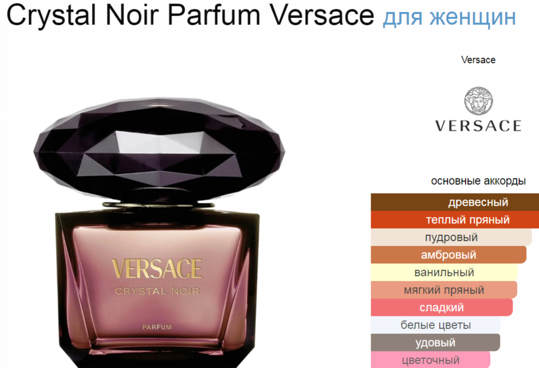 Верхние ноты: Перец, Имбирь и Кардамон; средние ноты: Кокос, Гардения, Цветок апельсина и Пион; базовые ноты: Сандал, Мускус и Амбра.