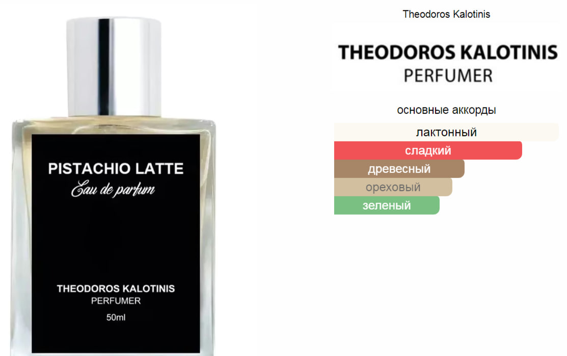 Первый аккорд парфюма дарит яркий, зеленый аромат свежих фисташек — нежного ореха, все еще растущего на ветке, — который захватывает чувства, как будто его коснулся солнечный свет. Эта яркая зеленая нота смешивается с бархатистым молочным аккордом и раскрывает два нюанса: сначала пикантную свежесть зеленой фисташки, затем внутреннее тепло жареного ореха. Это тепло нежно окутывает сливочные ноты настоящего, теплого сгущенного и подслащенного молока, которые придают аромату мягкую, насыщенную глубину и оседают на коже, как долгий сон, который длится весь день