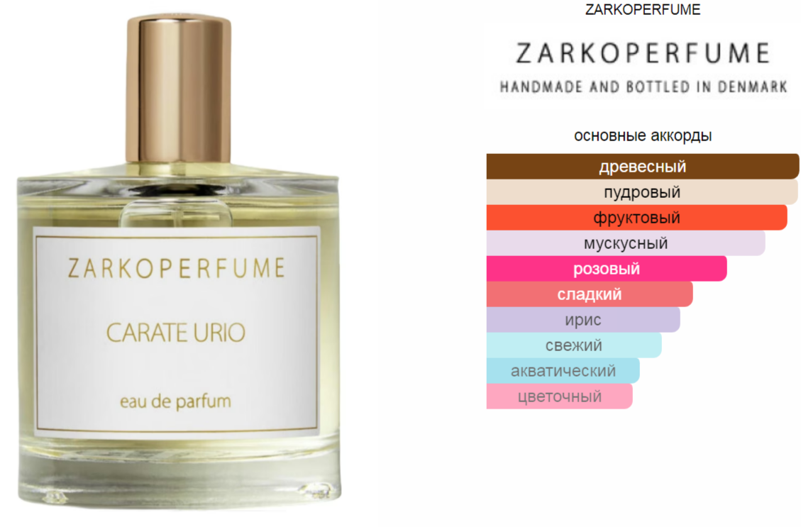 Верхние ноты: Груша, Яблоко и Клубника; средние ноты: Розовая роза и Ирис; базовые ноты: Мускус, Кедр и Сандал.