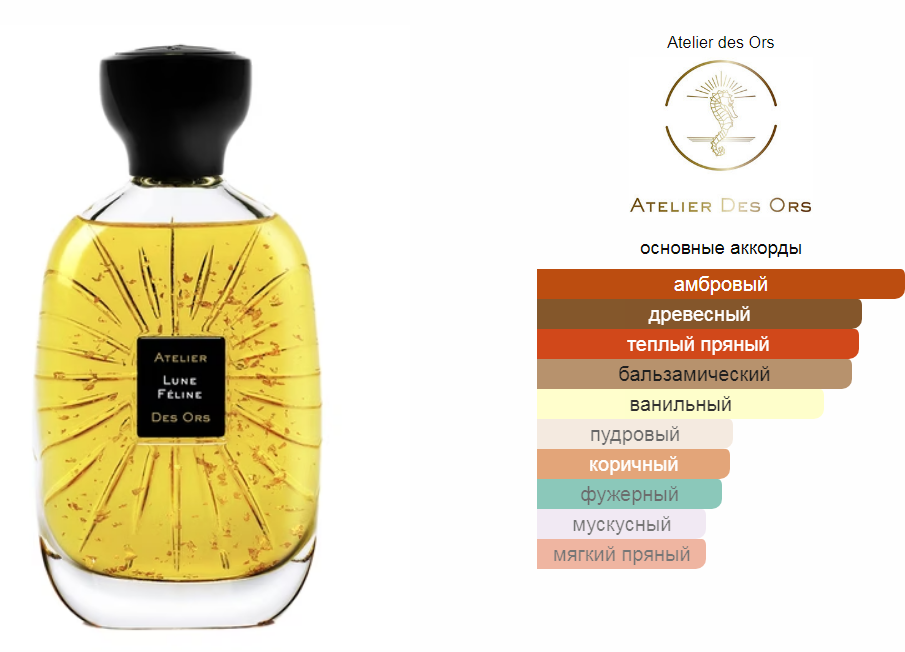 Верхние ноты: Кардамон, Корица и Розовый перец; средние ноты: Древесные ноты, Серая амбра, Стиракс, Кедр и Зеленые ноты; базовые ноты: Ваниль, Перуанский бальзам и Мускус.