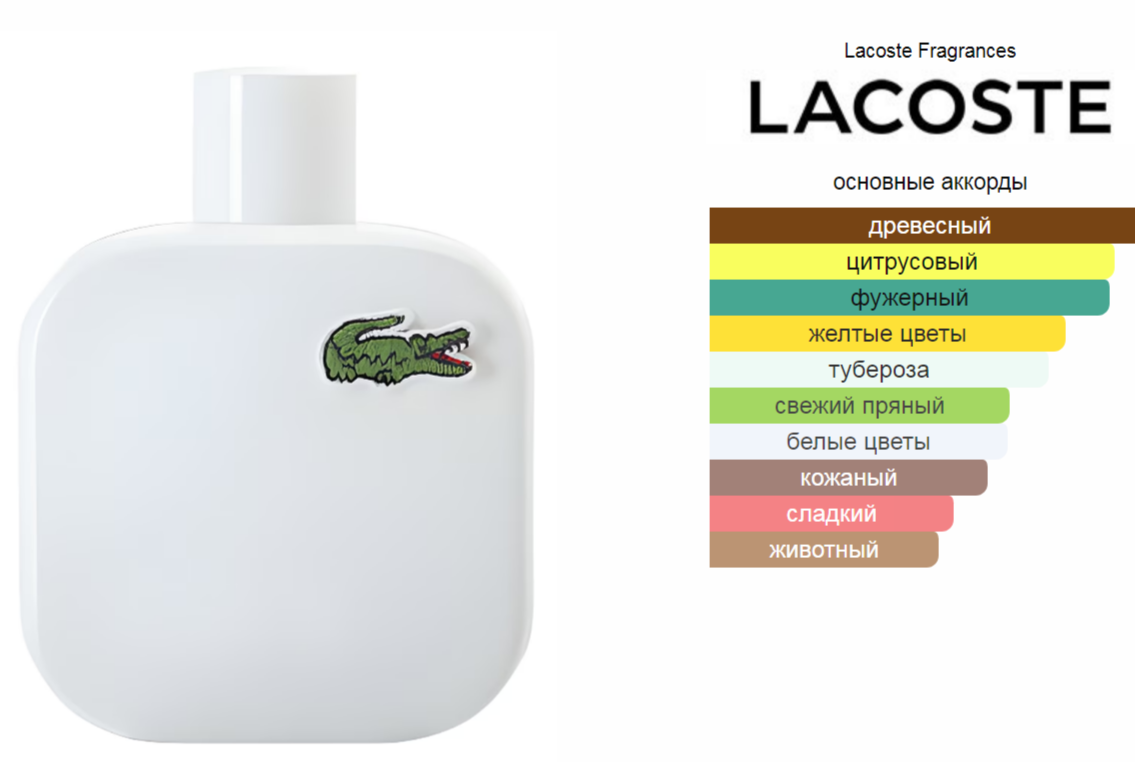 Верхние ноты: Грейпфрут, Розмарин и Кардамон; средние ноты: Иланг-иланг и Тубероза; базовые ноты: Вирджинский кедр, Замша, Ветивер и Кожа