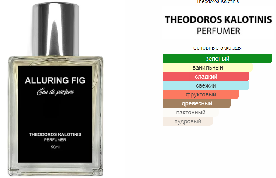 Звучание начинается с зелёной свежести листьев инжира, дарящих прохладную, чуть терпкую травянистость. Затем раскрывается сердце композиции — сочная мякоть инжира, которая дарит натуральную сладость без приторности, словно спелый плод, только что сорванный с ветки. Финальную основу аромату задает ваниль, добавляющая мягкое кремовое тепло и делающая шлейф уютным и обволакивающим, как вечернее солнце, ласкающее кожу.