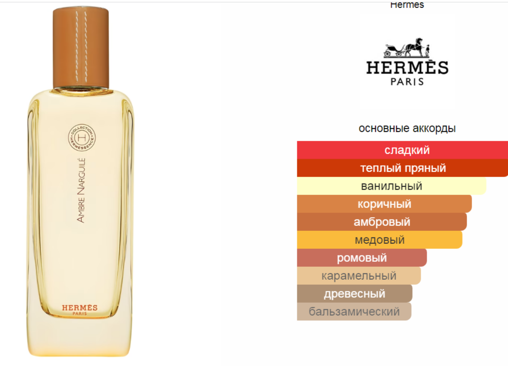Свобода, страсть и фантазия в пряной парфюмерной композиции для мужчин и женщин Hermes Hermessence Ambre Narguile. Золотой сироп из стираксового дерева, ванили и лабданума соединяется со сладкими ароматами меда и карамели. Сладко-острый аромат окутан дымкой кумарина, запахом орхидеи и табака.