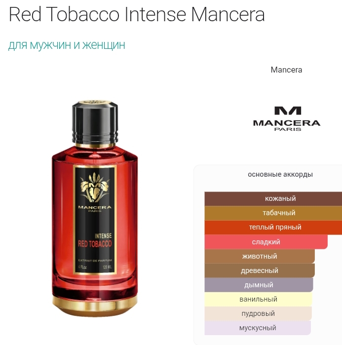 Верхние ноты: Уд, Корица, Ладан, Шафран, Груша и Мускатный орех; средние ноты: Кожа, Табак, Пачули, Ветивер и Жасмин; базовые ноты: Ваниль, Мускус, Сандал, Гваяк и Серая амбра.