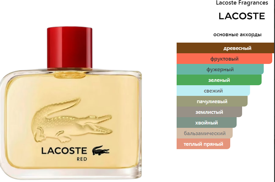 Верхняя нота: Зеленое яблоко; средняя нота: Сосна; базовые ноты: Пачули и Ветивер.