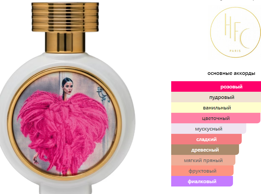 Верхние ноты: Роза, Розовый перец и Красные ягоды; средние ноты: Роза, Магнолия, Фиалка, Розовая герань и Ирис; базовые ноты: Мадагаскарская ваниль, Белый мускус, Сандал, Амбра и Лабданум.
