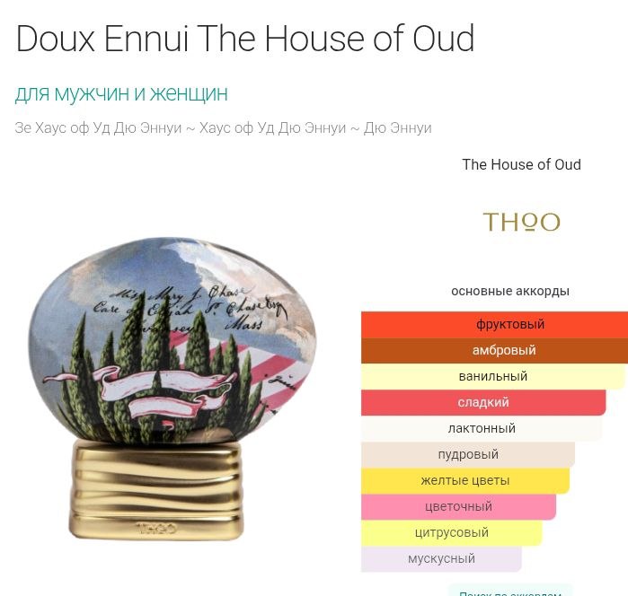 Верхние ноты: Абрикосовый джем, Иланг-иланг и Мандарин; средние ноты: Сливочное масло, Персик, Иланг-иланг и Соль; базовые ноты: Ваниль, Амбра, Османтус, Бензоин и Мускус.